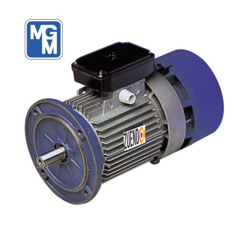 Motor eléctrico trifásico de la marca MGM con electrofreno, de construcción cerrada y con ventilación externa. El freno entra en funcionamiento con la falta de corriente, asegurando una parada precisa y también su intervención instantánea en caso de interrupción involuntaria de la corriente de alimentación (Ya sea por por avería de las instalación eléctrica, por suspensión del suministro, etc...). Estos motores permiten el frenado en ambos sentidos de giro sin deslizamiento axial del eje.