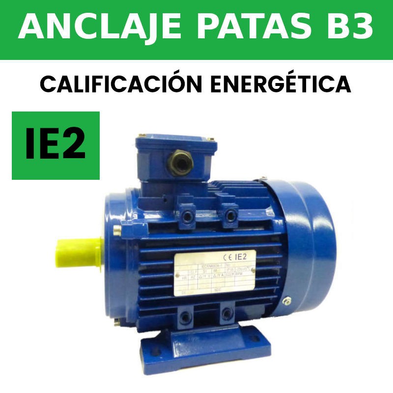 Un motor con calificación energética IE2 de bajo consumo está desarrollado para un mejor rendimiento y alta eficiencia energética. Entre sus características principales frente a los motores IE1 son un menor calentamiento, menor coste de mantenimiento, mejor factor de servicio y mas adecuados para su uso con variadores de frecuencia, con el consiguiente ahorro económico en la factura de la luz y aumento de su vida útil.