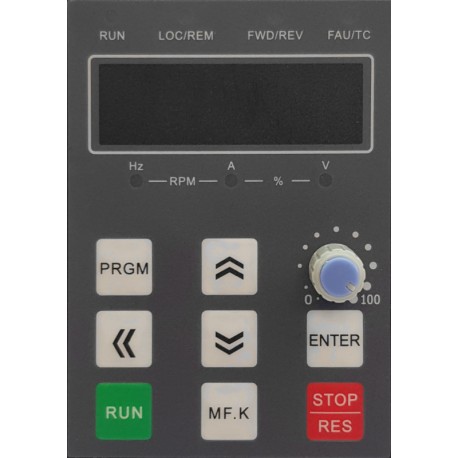 | Tecla MF | Tecla multifunción(MF) programable: Seleccionable entre FWD/REV, función JOG, operación local o remota... | |